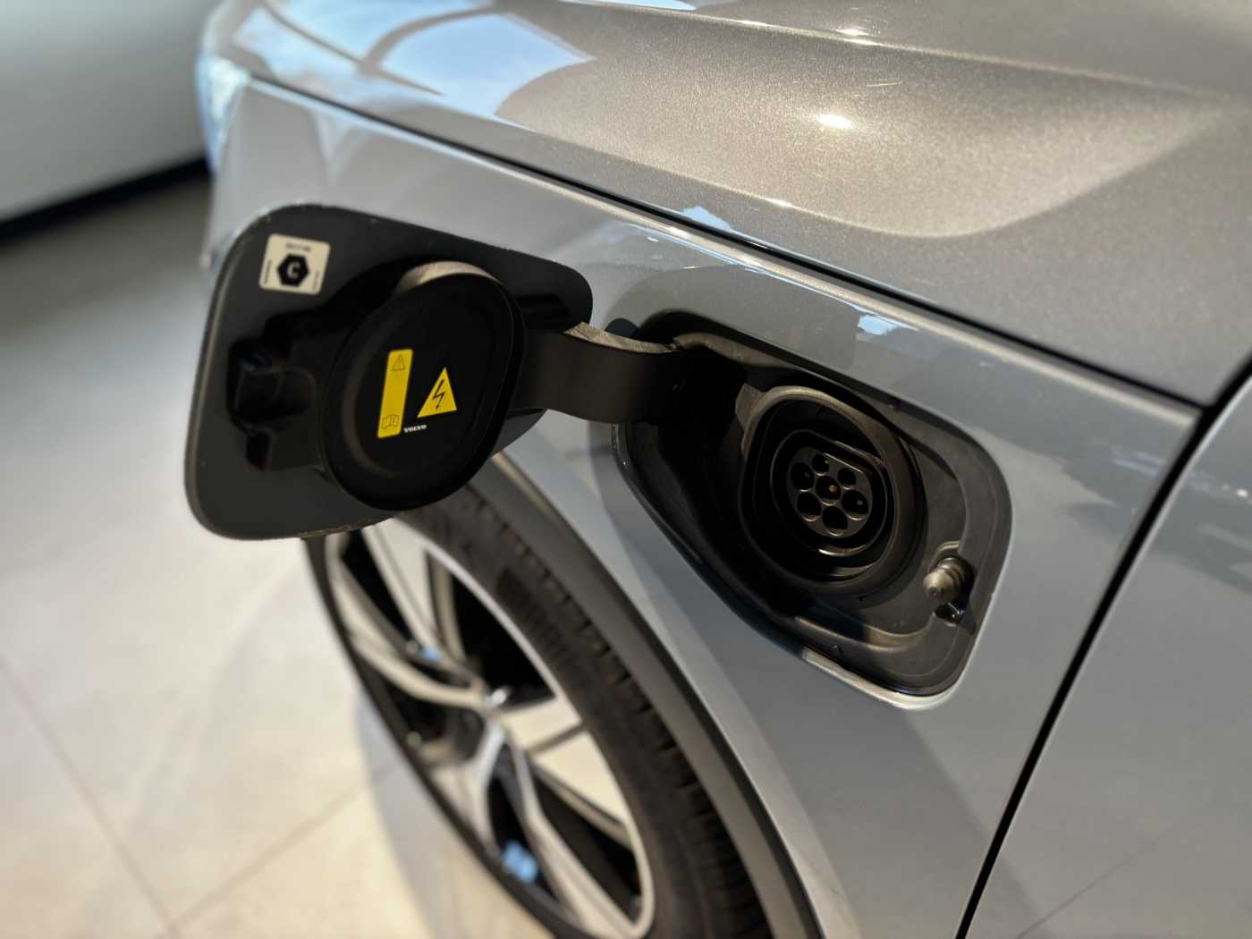 Dak in contrastkleur Solid Black, Buitenspiegelkappen in contrastkleur Solid Black, Bekleding van nubuck textiel/nappaleer, Drive Modes: vooringestelde rijprogramma's, 7-traps automaat met dubbele koppeling, Aluminium sportpedalen, Lederen schakelpookknop met contrasterend stiksel, Klimaatregeling: 2 temperatuurzones en ventilatieroosters achter, Uitschakelbare passagiersairbag vooraan, Bestuurder - en passagiers airbag, Knieairbag voor de bestuurder, Charcoal dakhemelbekleding, Charcoal inlegpanelen in het interieur, Road Sign Information, Lane Keeping Aid met Run-off Road Mitigation, R-Design radiatorrooster met omlijsting en lamellen Glossy Black, LED koplampen met Active High Beam, 12 inch bestuurdersdisplay, Adaptive Cruise Control, Pilot Assist, Snelheidsbegrenzer, Volvo on Call app, DAB+ (Digital Audio Broadcasting), High Performance audiosysteem 250W met 8 luidsprekers, Elektrisch inklapbare buitenspiegels, Automatische deurvergrendeling, Transpondersleutel, Klein opbergvak. vooraan, Double Locking, Donkergetinte achterruiten, Elektrisch bediende kofferklep, Keyless Entry met handenvrije opening/sluiting van de kofferklep, Clean Zone: interieurluchtkwaliteitssysteem met IAQS en koolstoffilter, Uitklapbaar haakje voor draagtas aan dashboardkastje, Stembediening voor het Sensus Connect systeem, Digitale gebruikershandleiding, Hypermodern aluminium sierpaneel, Comfort passagierszetel met manuele hoogte- en lengteregeling, Verwarmbare voorzetels, Manueel neerklapbare hoofdsteunen achteraan, Vijfzitsconfiguratie, Achterbank met neerklapbare rugleuning in twee delen 60/40, Voorzetels met manueel verlengbaar zitkussen, Lendensteun vooraan elektrisch regelbaar in 4 richtingen, Sport vloermatten voor- en achteraan, Centrale armsteun achteraan met doorsteekluik, Verlichte make-upspiegels, Interieurverlichting Pro, 12V stopcontact in de bagageruimte, Buiten- en binnenspiegels met automatische dimfunctie, High Gloss Black tunnelconsole, Chassis, Hill Start Assist, Bandenspanningscontrolesysteem iTPMS, Oncoming Lane Mitigation, Hill Descent Control, Noodremlichten, Verwarmbaar stuurwiel, Sportstuur in simili-leder met Silk Metal inleg, Instelbare stuurbekrachtiging, 19" met 5 spaken. Black Diamond Cut , Bandenreparatiekit, Verborgen uitlaten, Glossy Black zijruitomlijsting, Glossy Black geïntegreerde dakrails, Instaplijsten vooraan met Recharge-logo, Recharge logo in relief op de achterste dakstijl, Tempered glass. side & rear windows, Regensensor, Sensus navigatiesysteem incl. RTTI + gratis kaartupdates, Park Assist parkeerhulp vooraan , Tickethouder , Hoogspanningskoeler/-verwarmer (HVCH), 360°-camera, Brandblushouder, Wieldoppenset. Matt Tech Grey, Laadkabel monofase 16A mode 3 met Mennekes contactstekker (voor laadpaal). 7m, Integratie van smartphone, Voorstoelen, 9" middendisplay, Laadkabel 1-fase 10A mode 2. Schuko stekker (thuisgebruik) (7m), Whiplashbescherming. voorzetels, Gordijnairbags, Side Impact Protection System, ISOFIX bevestigingspunten: buitenste zitplaatsen achteraan, Stuurwielbediening, Vochtigheidssensor, Bluetooth® voor handenvrij bellen en muziekstreaming