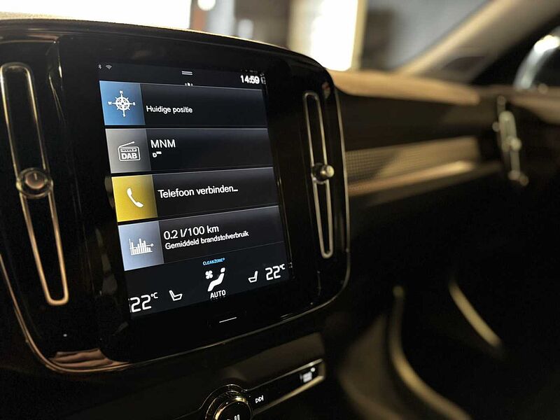 Dak in contrastkleur Solid Black, Buitenspiegelkappen in contrastkleur Solid Black, Bekleding van nubuck textiel/nappaleer, Drive Modes: vooringestelde rijprogramma's, 7-traps automaat met dubbele koppeling, Aluminium sportpedalen, Lederen schakelpookknop met contrasterend stiksel, Klimaatregeling: 2 temperatuurzones en ventilatieroosters achter, Uitschakelbare passagiersairbag vooraan, Bestuurder - en passagiers airbag, Knieairbag voor de bestuurder, Charcoal dakhemelbekleding, Charcoal inlegpanelen in het interieur, Road Sign Information, Lane Keeping Aid met Run-off Road Mitigation, R-Design radiatorrooster met omlijsting en lamellen Glossy Black, LED koplampen met Active High Beam, 12 inch bestuurdersdisplay, Adaptive Cruise Control, Pilot Assist, Snelheidsbegrenzer, Volvo on Call app, Geventileerde subwoofer, DAB+ (Digital Audio Broadcasting), Harman Kardon audiosysteem 660W met 13 luidsprekers, Elektrisch inklapbare buitenspiegels, Automatische deurvergrendeling, Transpondersleutel, Klein opbergvak. vooraan, Double Locking, Donkergetinte achterruiten, Elektrisch bediende kofferklep, Keyless Entry met handenvrije opening/sluiting van de kofferklep, Clean Zone: interieurluchtkwaliteitssysteem met IAQS en koolstoffilter, Uitklapbaar haakje voor draagtas aan dashboardkastje, Stembediening voor het Sensus Connect systeem, Digitale gebruikershandleiding, Hypermodern aluminium sierpaneel, Comfort passagierszetel met manuele hoogte- en lengteregeling, Verwarmbare voorzetels, Manueel neerklapbare hoofdsteunen achteraan, Vijfzitsconfiguratie, Achterbank met neerklapbare rugleuning in twee delen 60/40, Voorzetels met manueel verlengbaar zitkussen, Lendensteun vooraan elektrisch regelbaar in 4 richtingen, Sport vloermatten voor- en achteraan, Centrale armsteun achteraan met doorsteekluik, Verlichte make-upspiegels, Interieurverlichting Pro, 12V stopcontact in de bagageruimte, Buiten- en binnenspiegels met automatische dimfunctie, High Gloss Black tunnelconsole, Chassis, Hill Start Assist, Bandenspanningscontrolesysteem iTPMS, Oncoming Lane Mitigation, Hill Descent Control, Noodremlichten, Verwarmbaar stuurwiel, Sportstuur in simili-leder met Silk Metal inleg, Instelbare stuurbekrachtiging, 19" met 5 spaken. Black Diamond Cut , Bandenreparatiekit, Verborgen uitlaten, Glossy Black zijruitomlijsting, Glossy Black geïntegreerde dakrails, Instaplijsten vooraan met Recharge-logo, Recharge logo in relief op de achterste dakstijl, Tempered glass. side & rear windows, Regensensor, Sensus navigatiesysteem incl. RTTI + gratis kaartupdates, Park Assist parkeerhulp vooraan , Tickethouder , Hoogspanningskoeler/-verwarmer (HVCH), Park Assist Camera achteraan, Brandblushouder, Wieldoppenset. Matt Tech Grey, Integratie van smartphone, Voorstoelen, 9" middendisplay, Laadkabel 1-fase 16A mode 3. Mennekes stekker (voor laadpaal) (7m), Whiplashbescherming. voorzetels, Gordijnairbags, Side Impact Protection System, ISOFIX bevestigingspunten: buitenste zitplaatsen achteraan, Stuurwielbediening, Vochtigheidssensor, Bluetooth® voor handenvrij bellen en muziekstreaming