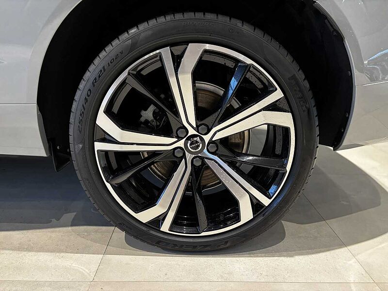 Schakelpookknop in simili-leder bekleed, Hemelbekleding in Blond, Metal Mesh aluminium sierinleg, Leerbekleding, Stuurwiel op maat. Charcoal, Comfort-voorstoelen, 8-traps Geartronic™-automaat, Pedalen, Aircosysteem met twee zones, Verwarming parkeerklimaat, Passagiersairbagschakelaar, Tweetrapsairbags, Knieairbag. bestuurderszijde, Panoramisch dak, Road Sign Information, Lane Keeping Aid, Frontgrille met hoogglans zwart inzetstuk, Verwarmd grille-embleem, Full LED koplampen met Active High Beam, Hogedruk koplampreinigingsinstallatie, Controle aanhangerverlichting, LED mistlampen vooraan, 12.3" bestuurdersdisplay, Google Assistant. Google Maps en Google Play Store, Adaptive Cruise Control, Pilot Assist, Snelheidsbegrenzer, Volvo Cars-app, Geventileerde subwoofer, Digital Audio Broadcasting (DAB+), Harman Kardon Premium Sound, Elektrisch inklapbare buitenspiegels, Geheugenfunctie voor de zitpositie van de passagierszetel vooraan, Draadloos oplaadsysteem voor smartphone, Automatische portiervergrendeling, Transpondersleutel, Spiegelkappen in glanzend zwart, Dubbele vergrendeling, Donkergetinte achterruiten, Driver Awareness: BLIS™ and Cross Traffic Alert, Elektrisch bedienbare kindersloten op achterportieren, Elektrisch bediende achterklep, Keyless Entry met handsfree elektrische achterklep., Luchtfilter en interieurvoorreiniging op afstand, Digitale gebruikershandleiding, Taal Duits, Elektrisch bedienbare bestuurderszetel met geheugen, Elektrisch bedienbare passagiersstoel, Verwarmbare voorzetels, Verwarmbare buitenste zitplaatsen tweede zitrij, Elektrisch neerklapbare hoofdsteunen achteraan, 5 zitplaatsen, Mechanische ontgrendeling van de tweede rij zitplaatsen, Elektrisch bedienbare lendensteun met 4-wegverstelling, Textielen vloermatten voor het interieur, Bagagenet, Middenarmsteun achter, Verlichte make-upspiegels, Geavanceerde interieurverlichting, Elektrische aansluiting. bagageruimte, EHBO-set, Rolhoes. handbediend, Buiten- en binnenspiegels met automatische dimfunctie, Verstelbare zittingverlenging voor, Chassis, Hill Start Assist, Tyre Pressure Monitoring System, Oncoming Lane Mitigation, Rear Collision Warning, Hill Descent Control, Waarschuwing voor glad wegdek, Noodstopverlichting, Verwarmbaar stuurwiel, Adaptieve stuurbekrachtiging, 21" met 5 dubbele spaken glossy black diamond cut, Noodreservewiel T125/80 R18, Wisserbladen met geïntegreerde sproeiers, Op de carrosseriekleur afgestemde portiergrepen met grondverlichting, Scuff plate achterklepopening. roestvrij staal, Volvo instaplijsten. aluminium, Glossy Black omlijsting zijruit, Dakrails. Glossy Black, Gevarendriehoek, Getemperde zij- en achterruiten, Park Assist. voor-. achter- en zijkant, Houder voor parkeerkaartjes, Parkeerverwarming op brandstof met timer , 360 graden camera met bovenaanzicht, Wieldoppenset. Matt Tech Grey, Apple CarPlay, 9 inch middendisplay, Bescherming tegen whiplash, Gordijnairbag, Zijdelingse bescherming, Intelligent Driver Information System (IDIS), Hooggeplaatste remlichten achter, ISOFIX bevestigingspunten. achterbank, Veiligheidsgordels, Regensensor, Bedieningsknoppen op het stuur, Vochtigheidssensor, Start/Stopsysteem, Bluetooth®-verbinding