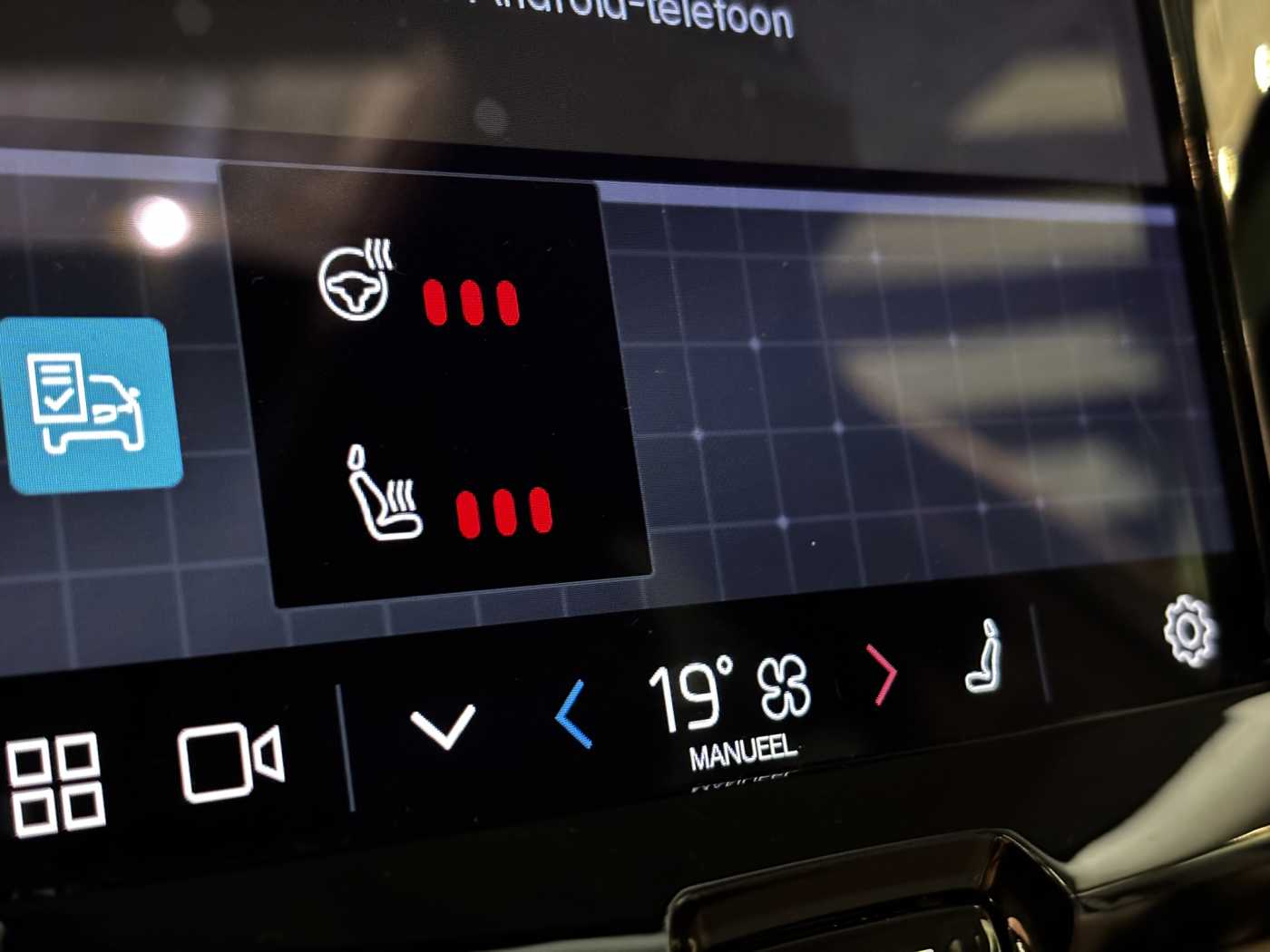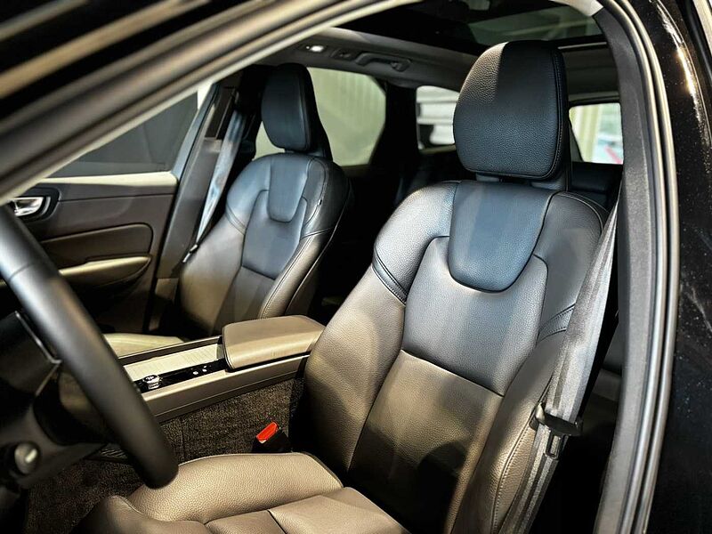 Schakelpookknop in simili-leder bekleed, Hemelbekleding in Blond, Metal Mesh aluminium sierinleg, Leerbekleding, Stuurwiel op maat. Charcoal, Comfort-voorstoelen, 8-traps Geartronic™-automaat, Pedalen, Aircosysteem met twee zones, Verwarming parkeerklimaat, Passagiersairbagschakelaar, Tweetrapsairbags, Knieairbag. bestuurderszijde, Panoramisch dak, Road Sign Information, Lane Keeping Aid, Frontgrille met hoogglans zwart inzetstuk, Verwarmd grille-embleem, Full LED koplampen met Active High Beam, Hogedruk koplampreinigingsinstallatie, Controle aanhangerverlichting, LED mistlampen vooraan, 12.3" bestuurdersdisplay, Google Assistant. Google Maps en Google Play Store, Adaptive Cruise Control, Pilot Assist, Snelheidsbegrenzer, Volvo Cars-app, Geventileerde subwoofer, Digital Audio Broadcasting (DAB+), Harman Kardon Premium Sound, Elektrisch inklapbare buitenspiegels, Geheugenfunctie voor de zitpositie van de passagierszetel vooraan, Draadloos oplaadsysteem voor smartphone, Automatische portiervergrendeling, Transpondersleutel, Spiegelkappen in glanzend zwart, Dubbele vergrendeling, Donkergetinte achterruiten, Driver Awareness: BLIS™ and Cross Traffic Alert, Elektrisch bedienbare kindersloten op achterportieren, Elektrisch bediende achterklep, Keyless Entry met handsfree elektrische achterklep., Luchtfilter en interieurvoorreiniging op afstand, Digitale gebruikershandleiding, Taal Duits, Elektrisch bedienbare bestuurderszetel met geheugen, Elektrisch bedienbare passagiersstoel, Verwarmbare voorzetels, Verwarmbare buitenste zitplaatsen tweede zitrij, Elektrisch neerklapbare hoofdsteunen achteraan, 5 zitplaatsen, Mechanische ontgrendeling van de tweede rij zitplaatsen, Elektrisch bedienbare lendensteun met 4-wegverstelling, Textielen vloermatten voor het interieur, Bagagenet, Middenarmsteun achter, Verlichte make-upspiegels, Geavanceerde interieurverlichting, Elektrische aansluiting. bagageruimte, EHBO-set, Rolhoes. handbediend, Buiten- en binnenspiegels met automatische dimfunctie, Verstelbare zittingverlenging voor, Chassis, Hill Start Assist, Tyre Pressure Monitoring System, Oncoming Lane Mitigation, Rear Collision Warning, Hill Descent Control, Waarschuwing voor glad wegdek, Noodstopverlichting, Verwarmbaar stuurwiel, Adaptieve stuurbekrachtiging, 19" 5-V-spaaks glossy black diamond cut, All-seasonbanden, Noodreparatieset, Verwarmbare voorruit met elektrische ontdooiingsfunctie, Wisserbladen met geïntegreerde sproeiers, Op de carrosseriekleur afgestemde portiergrepen met grondverlichting, Scuff plate achterklepopening. roestvrij staal, Volvo instaplijsten. aluminium, Glossy Black omlijsting zijruit, Dakrails. Glossy Black, Gevarendriehoek, Getemperde zij- en achterruiten, Park Assist. voor-. achter- en zijkant, Houder voor parkeerkaartjes, Parkeerverwarming op brandstof met timer , 360 graden camera met bovenaanzicht, Wieldoppenset. Matt Tech Grey, Apple CarPlay, 9 inch middendisplay, Bescherming tegen whiplash, Gordijnairbag, Zijdelingse bescherming, Intelligent Driver Information System (IDIS), Hooggeplaatste remlichten achter, ISOFIX bevestigingspunten. achterbank, Veiligheidsgordels, Regensensor, Bedieningsknoppen op het stuur, Vochtigheidssensor, Start/Stopsysteem, Bluetooth®-verbinding