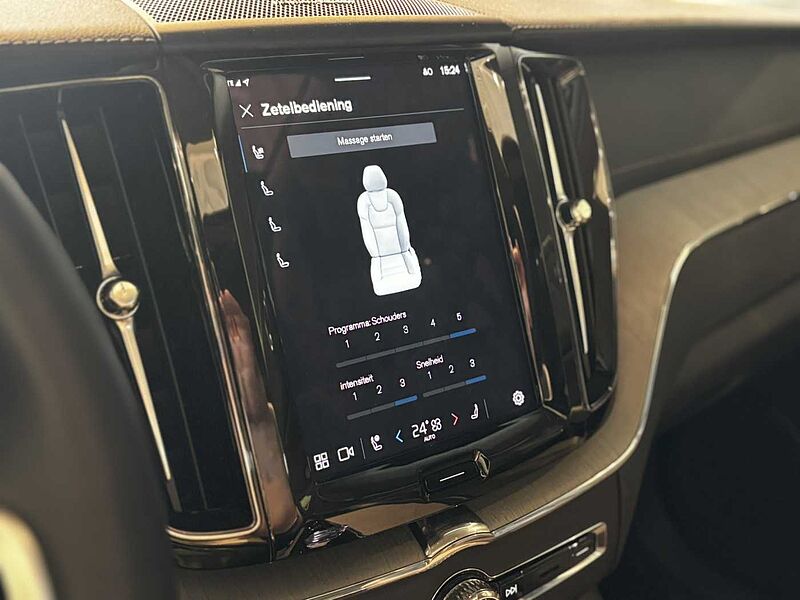 Hemelbekleding in Blond, Driftwood sierinleg, Stuurwiel op maat. Charcoal, 8-traps Geartronic™-automaat, Pedalen, Kristallen versnellingspook van Orrefors®, Aircosysteem met twee zones, Naloop parkeerklimaat, Passagiersairbagschakelaar, Tweetrapsairbags, Knieairbag. bestuurderszijde, Panoramisch dak, Road Sign Information, Lane Keeping Aid en Lane Departure Warning, Frontgrille met hoogglans zwart inzetstuk, Verwarmd grille-embleem, Full LED koplampen met Active High Beam, Hogedruk koplampreinigingsinstallatie, Controle aanhangerverlichting, 12.3" bestuurdersdisplay, Google Assistant. Google Maps en Google Play Store, Adaptive Cruise Control, Grafisch Head-up Display, Pilot Assist, Intelligent Speed Assist (ISA), Volvo Cars-app, Geventileerde subwoofer, Digital Audio Broadcasting (DAB+), Harman Kardon Premium Sound, Elektrisch inklapbare buitenspiegels, Geheugenfunctie voor de zitpositie van de passagierszetel vooraan, Draadloos oplaadsysteem voor smartphone, Automatische portiervergrendeling, Transpondersleutel, Spiegelkappen in glanzend zwart, Dubbele vergrendeling, Donkergetinte achterruiten, Driver Awareness: BLIS™ and Cross Traffic Alert, Elektrisch bedienbare kindersloten op achterportieren, Elektrisch bediende achterklep, Keyless Entry met handsfree elektrische achterklep., Luchtfilter en interieurvoorreiniging op afstand, Digitale gebruikershandleiding, Op het interieur afgestemd dashboard, Bekleding van geventileerd nappaleer, Zetels vooraan met massagefunctie, Elektrisch bedienbare bestuurderszetel met geheugen, Elektrisch bedienbare passagiersstoel, Geventileerde voorstoelen, Verwarmbare voorzetels, Elektrisch neerklapbare hoofdsteunen achteraan, 5 zitplaatsen, Mechanische ontgrendeling van de tweede rij zitplaatsen, Elektrisch bediende zijwangen, Elektrisch bedienbare lendensteun met 4-wegverstelling, Textielen vloermatten voor het interieur, Bagagenet, Middenarmsteun achter, Geintegreerde zittingverhogers buitenste zitplaatsen 2e zitrij, Verlichte make-upspiegels, Geavanceerde interieurverlichting, Elektrische aansluiting. bagageruimte, EHBO-set, Rolhoes. handbediend, Buiten- en binnenspiegels met automatische dimfunctie, Verstelbare zittingverlenging voor, Chassis, Hill Start Assist, Tyre Pressure Monitoring System, Oncoming Lane Mitigation, Rear Collision Warning, Hill Descent Control, Waarschuwing voor glad wegdek, Noodstopverlichting, Verwarmbaar stuurwiel, Adaptieve stuurbekrachtiging, 21" met 5 dubbele spaken glossy black diamond cut, Noodreparatieset, Wisserbladen met geïntegreerde sproeiers, Op de carrosseriekleur afgestemde portiergrepen met grondverlichting, Scuff plate achterklepopening. roestvrij staal, Volvo instaplijsten. aluminium, Glossy Black omlijsting zijruit, Dakrails. Glossy Black, Gevarendriehoek, Getemperde zij- en achterruiten, Park Assist. voor-. achter- en zijkant, Houder voor parkeerkaartjes, Elektrisch verwarmen en koelen van uw interieur, 360 graden camera met bovenaanzicht, Software voor alcoholslot, Wieldoppenset. Matt Tech Grey, Apple CarPlay, Comfort-voorstoelen, 9 inch middendisplay, Laadkabel 3-fase 16A mode 3. Mennekes contactstekker (voor laadpaal) (7m) (vervangt standaard laadkabel), Bescherming tegen whiplash, Gordijnairbag, Zijdelingse bescherming, Intelligent Driver Information System (IDIS), Hooggeplaatste remlichten achter, ISOFIX bevestigingspunten. achterbank, Veiligheidsgordels, Regensensor, Bedieningsknoppen op het stuur, Vochtigheidssensor, Start/Stopsysteem, Bluetooth®-verbinding