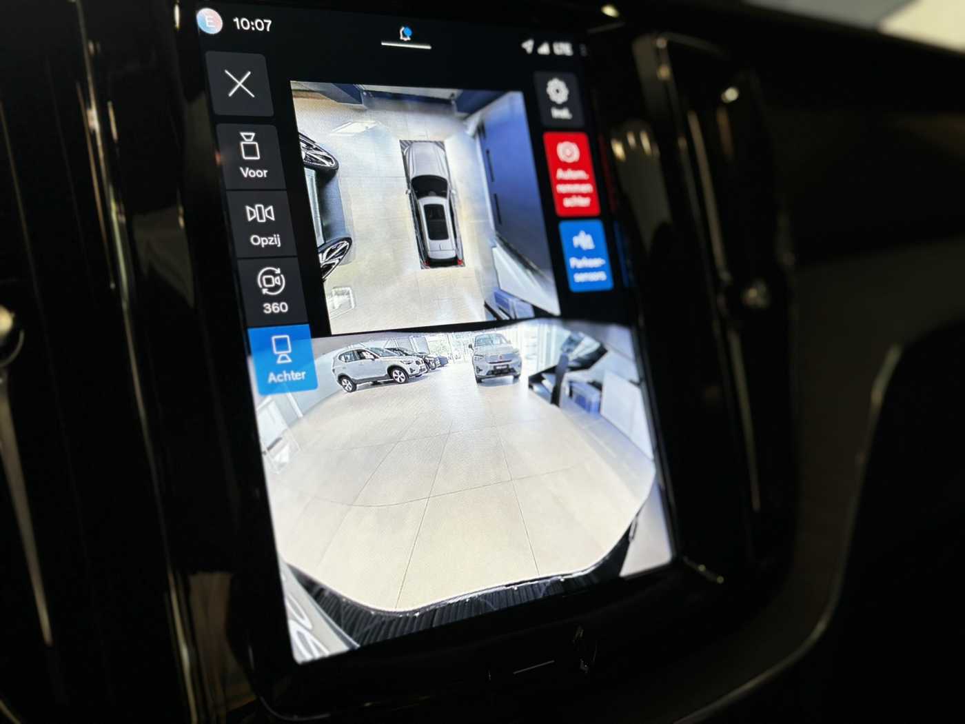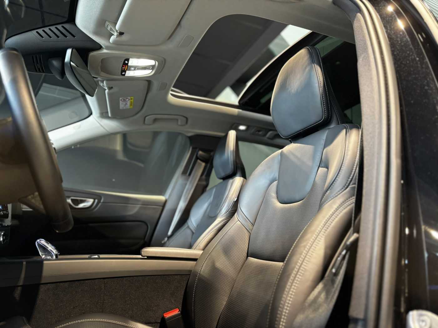 Hemelbekleding in Blond, Driftwood sierinleg, Stuurwiel op maat. Charcoal, 8-traps Geartronic™-automaat, Pedalen, Kristallen versnellingspook van Orrefors®, Aircosysteem met twee zones, Naloop parkeerklimaat, Passagiersairbagschakelaar, Tweetrapsairbags, Knieairbag. bestuurderszijde, Panoramisch dak, Road Sign Information, Lane Keeping Aid en Lane Departure Warning, Frontgrille met hoogglans zwart inzetstuk, Verwarmd grille-embleem, Full LED koplampen met Active High Beam, Hogedruk koplampreinigingsinstallatie, Controle aanhangerverlichting, 12.3" bestuurdersdisplay, Google Assistant. Google Maps en Google Play Store, Adaptive Cruise Control, Grafisch Head-up Display, Pilot Assist, Intelligent Speed Assist (ISA), Volvo Cars-app, Geventileerde subwoofer, Digital Audio Broadcasting (DAB+), Bowers & Wilkins High Fidelity audiosysteem, Elektrisch inklapbare buitenspiegels, Geheugenfunctie voor de zitpositie van de passagierszetel vooraan, Draadloos oplaadsysteem voor smartphone, Knoppen centrale vergrendeling. voor- en achterportieren, Transpondersleutel, Spiegelkappen in glanzend zwart, Dubbele vergrendeling, Donkergetinte achterruiten, Driver Awareness: BLIS™ and Cross Traffic Alert, Elektrisch bedienbare kindersloten op achterportieren, Elektrisch bediende achterklep, Keyless Entry met handsfree elektrische achterklep., Luchtfilter en interieurvoorreiniging op afstand, Digitale gebruikershandleiding, Taal Frans, Instructieboekje Frans, Op het interieur afgestemd dashboard, Bekleding van geventileerd nappaleer, Zetels vooraan met massagefunctie, Elektrisch bedienbare bestuurderszetel met geheugen, Elektrisch bedienbare passagiersstoel, Geventileerde voorstoelen, Verwarmbare voorzetels, Verwarmbare buitenste zitplaatsen tweede zitrij, Elektrisch neerklapbare hoofdsteunen achteraan, 5 zitplaatsen, Mechanische ontgrendeling van de tweede rij zitplaatsen, Elektrisch bediende zijwangen, Elektrisch bedienbare lendensteun met 4-wegverstelling, Textielen vloermatten voor het interieur, Bagagenet, Middenarmsteun achter, Verlichte make-upspiegels, Geavanceerde interieurverlichting, Elektrische aansluiting. bagageruimte, EHBO-set, Rolhoes. handbediend, Buiten- en binnenspiegels met automatische dimfunctie, Verstelbare zittingverlenging voor, Chassis, Hill Start Assist, Tyre Pressure Monitoring System, Oncoming Lane Mitigation, Rear Collision Warning, Hill Descent Control, Waarschuwing voor glad wegdek, Noodstopverlichting, Verwarmbaar stuurwiel, Adaptieve stuurbekrachtiging, 20" 6-spaaks glossy black diamond cut, Noodreparatieset, Wisserbladen met geïntegreerde sproeiers, Op de carrosseriekleur afgestemde portiergrepen met grondverlichting, Scuff plate achterklepopening. roestvrij staal, Volvo instaplijsten. aluminium, Glossy Black omlijsting zijruit, Dakrails. Glossy Black, Gevarendriehoek, Getemperde zij- en achterruiten, Park Assist. voor-. achter- en zijkant, Houder voor parkeerkaartjes, Elektrisch verwarmen en koelen van uw interieur, 360 graden camera met bovenaanzicht, Software voor alcoholslot, Apple CarPlay, Comfort-voorstoelen, 9 inch middendisplay, Thuislaadkabel. mobiel 7 m (8 A), Bescherming tegen whiplash, Gordijnairbag, Zijdelingse bescherming, Intelligent Driver Information System (IDIS), Hooggeplaatste remlichten achter, ISOFIX bevestigingspunten. achterbank, Veiligheidsgordels, Regensensor, Bedieningsknoppen op het stuur, Vochtigheidssensor, Start/Stopsysteem, Bluetooth®-verbinding