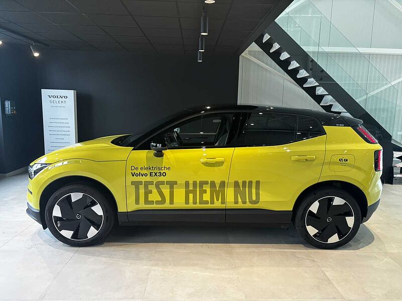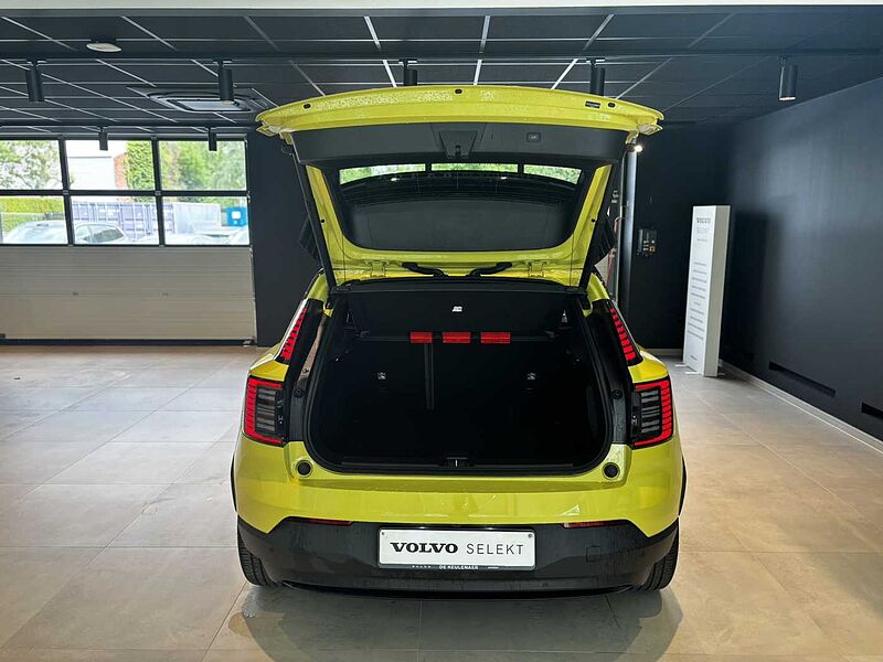 Snelheidsbegrenzer, Park Assist Camera achteraan , Harman Kardon Premium Sound, Hill Descent Control, Verwarmbare voorzetels, Dakspoiler. hoogglans zwart, Hill Start Assist, Verschuifbare bekerhouders en opbergruimte, USB-C-poorten voor- en achteraan, Draadloze Apple CarPlay, Volvo Guard alarmsysteem, Decor Flax, Centrale vergrendeling. double pull, EHBO-set, Run-off Road Mitigation, Spiegelkappen in glanzend zwart, Elektrische aansluiting. bagageruimte, Driver Alert System, Rear Collision Warning, Frontale airbags. passagier, Geavanceerde interieurverlichting, Zomerbanden, Digital Key (in de loop van 2025 via OTA), Remmen na een botsing, Handmatig verstelbare passagiersstoel, One Pedal Drive, Bekleding in wolmix en Nordico, Make-upspiegels, Digital Audio Broadcasting (DAB+), Ledkoplampen met Active High Beam, Adaptive Cruise Control, Decoratief element voor luchtroosters. transparant, Vaste lendensteun, Mistlampen. achteraan, Zijdelingse bescherming, Ledlichten achteraan, Lane Departure Warning, Automatisch dimmende binnen- en buitenspiegels, Ledverlichting. kofferruimte, Meting van luchtkwaliteit en vooraf op afstand reinigen van lucht in het interieur, Park Assist. vooraan en achteraan, Neerklapbare in twee delen splitsbare achterbank, Passagiersairbagschakelaar, Sfeerthema's, Verwarmbaar stuurwiel, Voorbereid voor 5G, Traffic Jam Assist, Draadloos oplaadsysteem voor smartphone, Pilot Assist, Handmatig kinderslot, Noodreparatieset, Buitenspiegels met grondverlichting, Front Cross Traffic Alert, Warmtepomp, Software voor alcoholslot, Ingebouwde lader van 11 kW, Lane Change Assist, Door opening alert, 19" 5-spaaks Glossy Black Diamond Cut, Led-koplampen, Road Sign Information, 12.3” centrale display, Rear Cross Traffic Alert with auto brake, 'Sport Key' mini-afstandsbediening, 5 zitplaatsen, Collision avoidance and mitigation, ISOFIX-bevestiging voor kinderzitje, Achterwielaandrijving (RWD), Air Quality System, Aircosysteem met twee zones, Stoelstandsensoren. bestuurder en passagier, Dak in contrasterende kleur. hoogglans zwart, Donkergetinte achterruiten, Shift-by-wire 1-traps transmissie, Elektrisch bediende achterklep, Lane Keeping Aid, Airbag bestuurder, Handmatig verstelbare bestuurderszetel, Gevarendriehoek, Interieurluchtfilter, Opbergvak voor telefoon achteraan, Opberging vooraan, Bagageruimte voorin, Comfort-chassis, Advanced sensing technology, Intersection autobrake, Handgestikt sportstuur, Oncoming mitigation by braking, Gordijnairbag, Textielen vloermatten voor het interieur, Ruime opbergvakken in de deuren, NFC-smartcardsleutel, Volvo EX30-app, Voetgangers en fietsers ontwijken, Blind Spot Information System (BLIS), Oncoming Lane Mitigation, Bescherming tegen whiplash, Draadloze updates, Google Assistant. Google Maps en Google Play Store – 4 jaar inbegrepen, Laadpaalkabel. 5 m (22 kW), Uitneembare opbergbak achteraan, Regensensor, Moduleerbare laadvloer